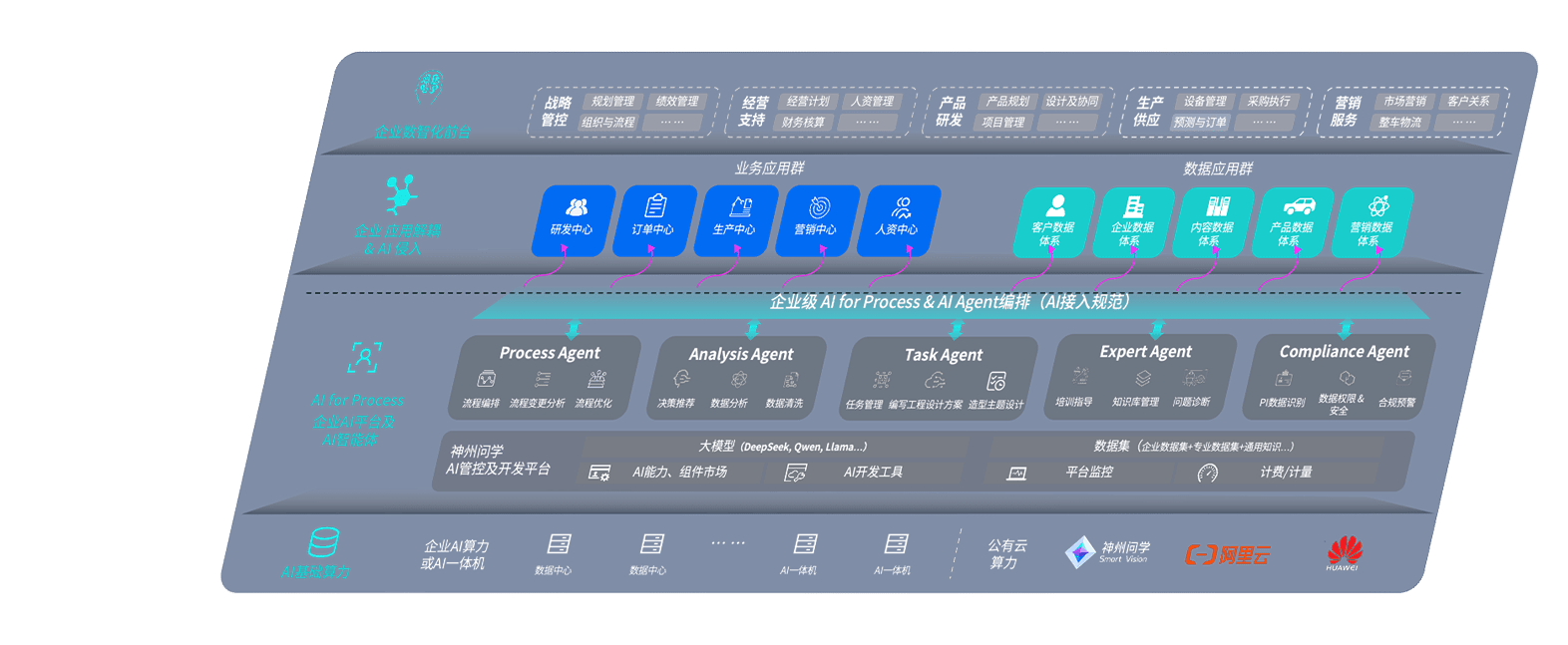 胜天国际问学智车解决方案是一套基于AI技术的汽车行业智能化系统,,,覆盖从底层算力到顶层AI应用的全栈方案。。。。方案由算力层、、、、模型层和应用层组成:算力层,,方案支持多种一体机配置,,具备云端灵活部署、、多云适配以及动态优化计算资源的能力;模型层,,胜天国际问学平台版提供了企业级AI应用一站式构建与管理平台,,支持基于后训练强化技术的汽车企业专属模型的训练、、、评测和运营;应用层,,,,胜天国际问学DeepSeek版提供包括超级员工、、智能招采、、、智能营销、、、、智能客服、、、AI for BI等一系列解决方案,,,,可助力汽车行业实现数字化转型,,让管理更智能、、、响应更敏捷。。